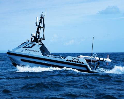 The demonstration, which is a follow-on to a successful operation that took place in October 2016 during Unmanned Warrior in Scotland, showcased the high area coverage rate (ACR) that is attainable when combining Northrop Grumman’s AQS-24B mine hunting system with the Atlas Elektronik UK ARCIMS USV, a platform that has proven to be extremely stable, and shown that it is ideally suited for towing the high-speed AQS-24B in rough seas.