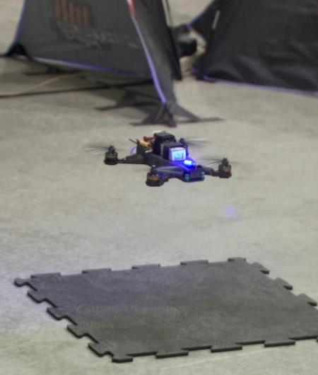 Built to racing specifications, the UAS could go as fast as 80 miles per hour (mph) in a straight line. Being that the obstacle course was set up in a JPL warehouse, though, the UAS could only fly at 30 or 40 mph before they needed to use the brakes.