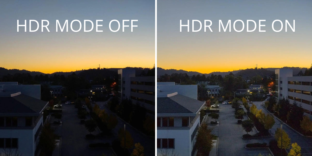Dynamic range is measured in decibels (dB). It indicates a camera's ability to capture and reproduce details in both bright and dark areas of an image. High Dynamic Range (HDR) camera modes enable commercial users to confidently operate in mixed lighting conditions—seeing clearly despite shadows or bright highlights.