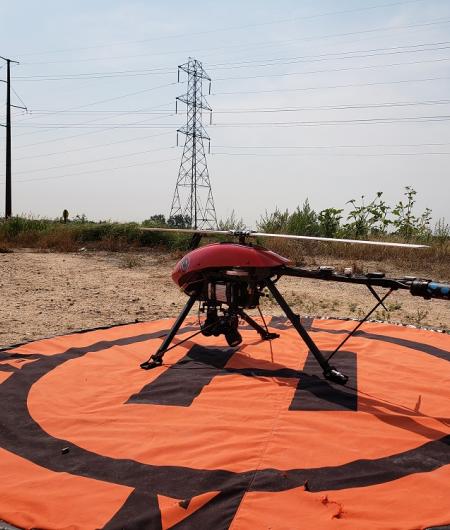 Licensed pilots are remotely operating a 35-pound UAS using advanced command-and-control technology. Equipped with two cameras, the UAS is collecting data on the condition of power lines and transmission towers with flights along a 50-mile route.