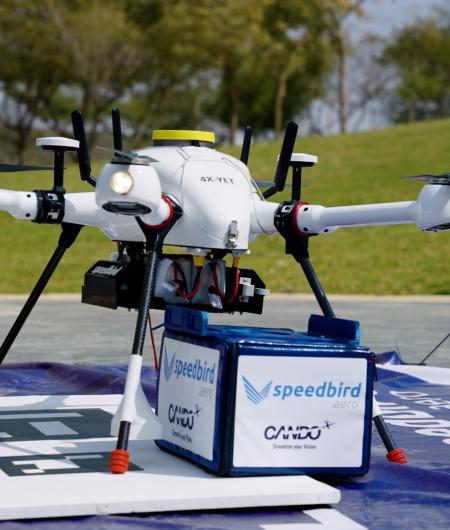 Speedbird built its first drone, the DLV1, for smaller payload logistics. This lightweight axle rotorcraft can carry up to three kilograms (6.6 pounds) of payload round trip. The DLV1 was the first drone to receive type certification by the National Civil Aviation Agency (Agência Nacional de Aviação Civil or ANAC), which has bilateral agreements with the Federal Aviation Administration (FAA) and the European Aviation Safety Agency (EASA). Other firsts for the DLV1 include ANAC approvals for BVLOS operations, including operations at night. Flights over people with the DLV1 start this month. Next up: one-to-many ops.