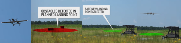 System detects obstacles in planned landing done and selects safe new landing point