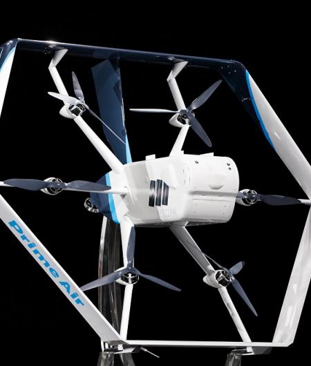 Amazon's newest drone design is equipped with advances in efficiency, stability and safety. The UAS also “advances the state of the art,” Amazon says, thanks to its hybrid design, and ability to perform vertical takeoffs and landings like a helicopter.