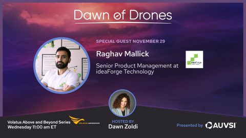 The Dawn of Drones podcast closes out an awesome month dedicated to “Crossover Drone Tech” and sponsored by Kongsberg Geospatial with Raghav Mallick, Senior Product Manager at ideaForge. Raghav is an Aerospace Engineer with over 10 years of success in Product Management, Research & Development, and Regulatory Policy, ensuring business and product success.