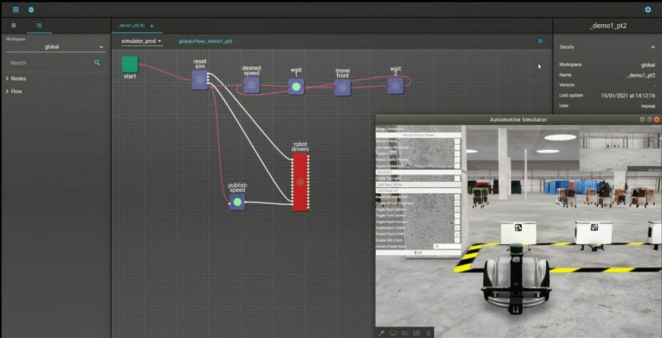 MOV.AI is a Robotics Engine platform based on ROS and packaged in an intuitive web based interface. It contains everything needed to build, deploy and operate intelligent robots. MOV.AI completely changes the way Autonomous Mobile Robots are developed, in terms of time to market, cost and flexibility.
